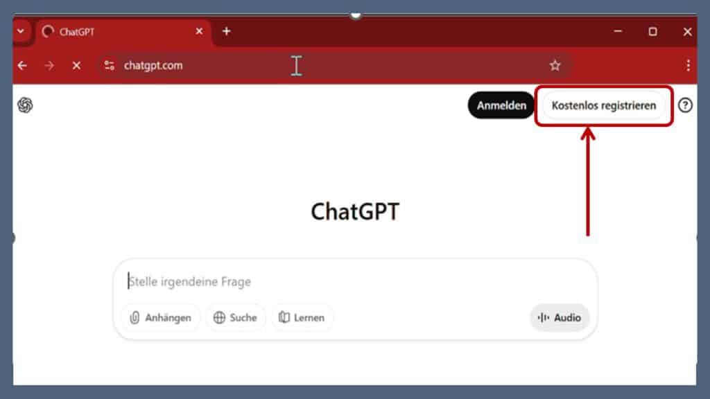 Öffnen Sie einen Internetbrowser (Firefox, Chrome, Safari, Edge usw.) und geben Sie chatgpt.com in die Adressleiste ein oder Klicken Sie einfach auf diesen Link chatgpt.com
